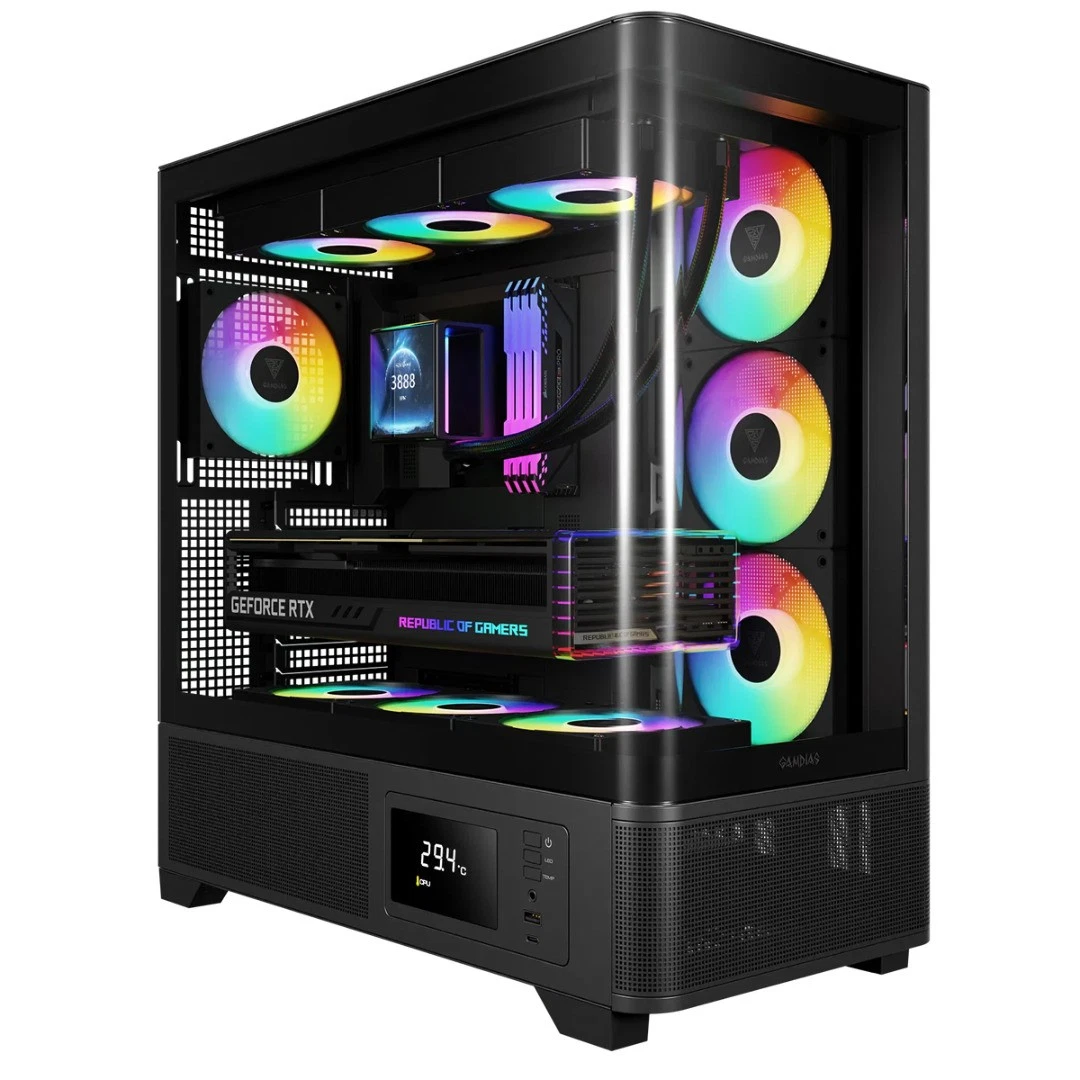 🔹 Design panoramique 270° – Panneau en verre trempé incurvé pour une vue complète sur vos composants
