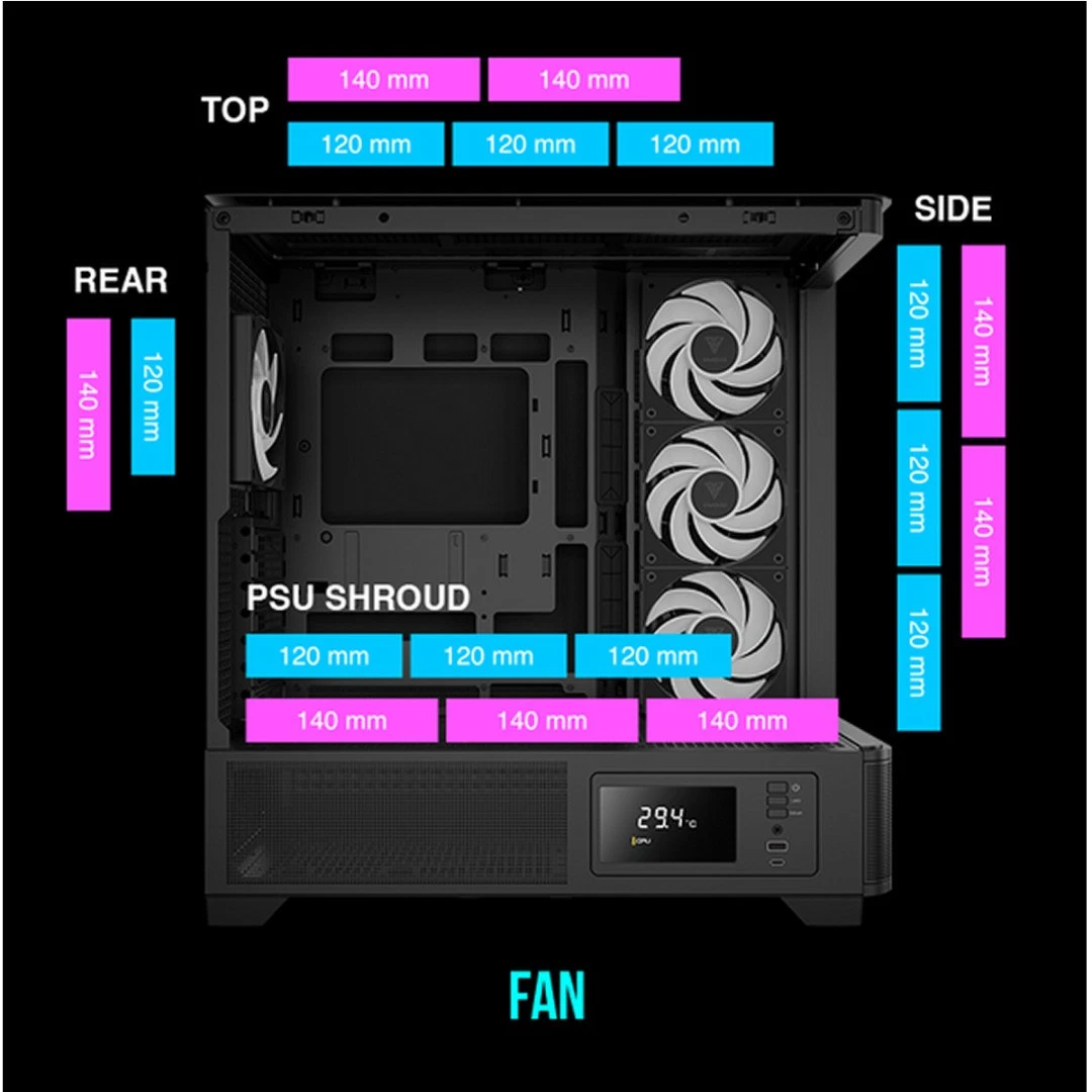🔹 Éclairage ARGB intégré – 4 ventilateurs ARGB PWM préinstallés (3 latéraux + 1 arrière)
