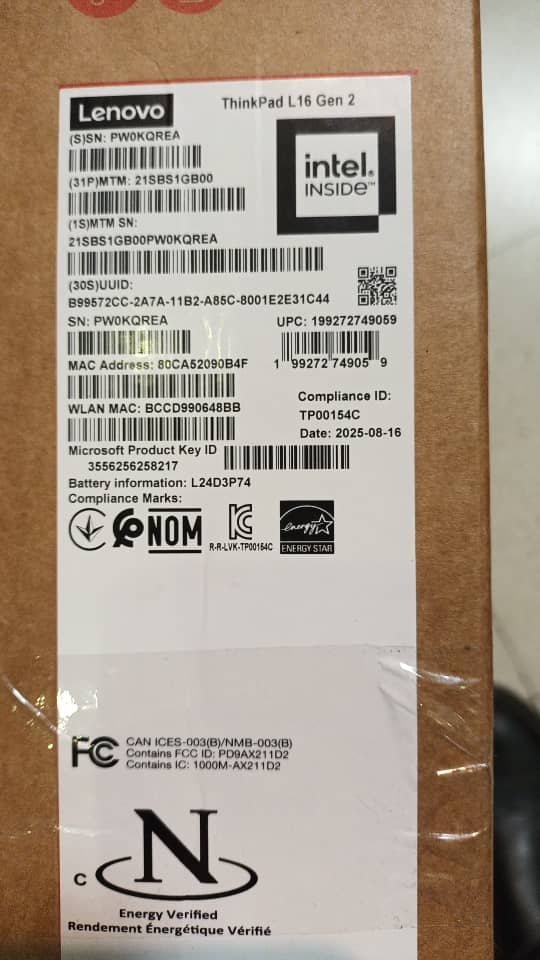 ✅Désignation : LENOVO THINKPAD L16 GEN 2 – CORE ULTRA 7 265U VPRO IA – 32GB – 512GB SSD – 16″ WUXGA IPS – BLACK