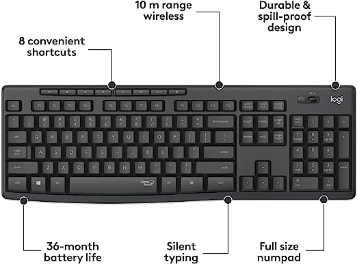 ✅Désignation : LOGITECH MK295 SILENT – ENSEMBLE SOURIS ET CLAVIER SANS FIL – SILENTTOUCH – USB – PILE AA – BLACK