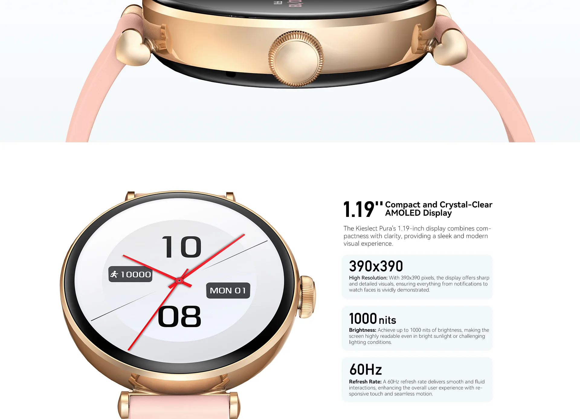 • Écran AMOLED ultra-clair de 1,19 pouces.