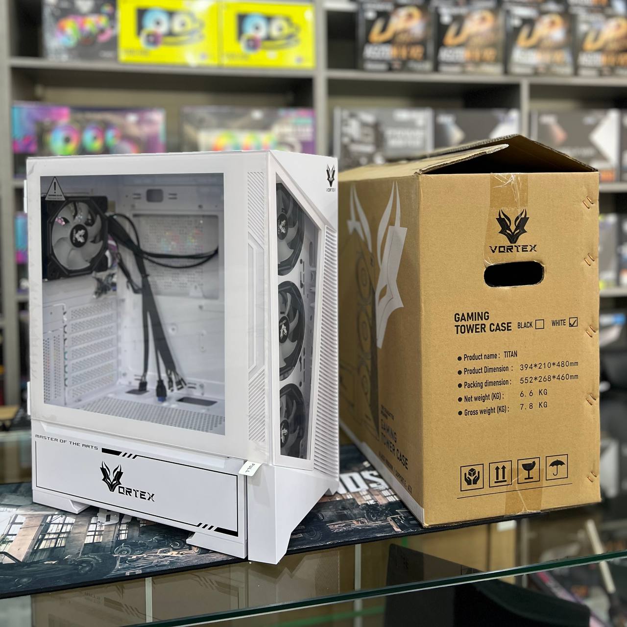 ✅Désignation : VORTEX TITAN – BOITIER MOYEN TOUR ATX – VERRE TREMPÉ – 360 mm – 4 FAN ARGB – AIRFLOW – WHITE